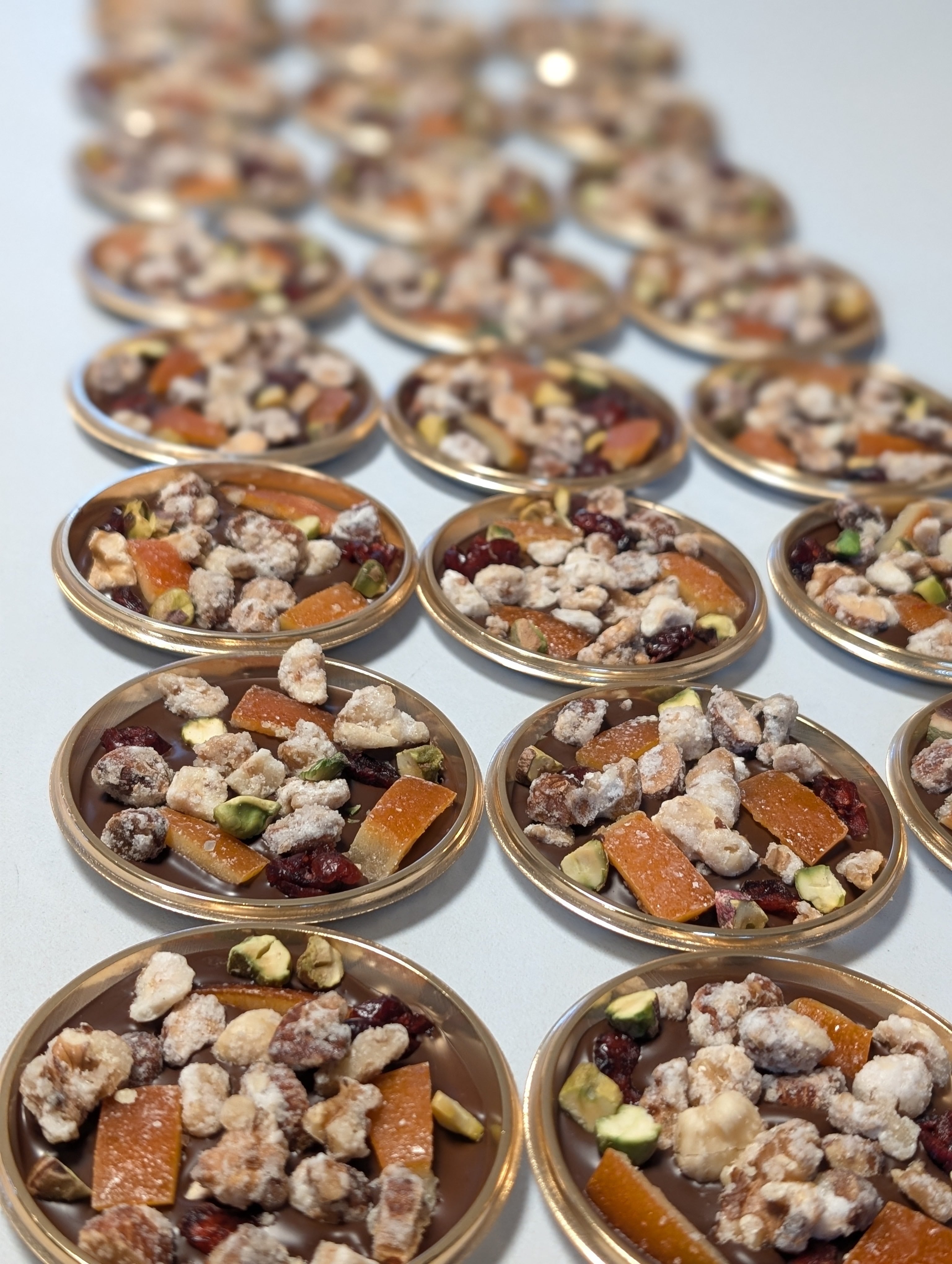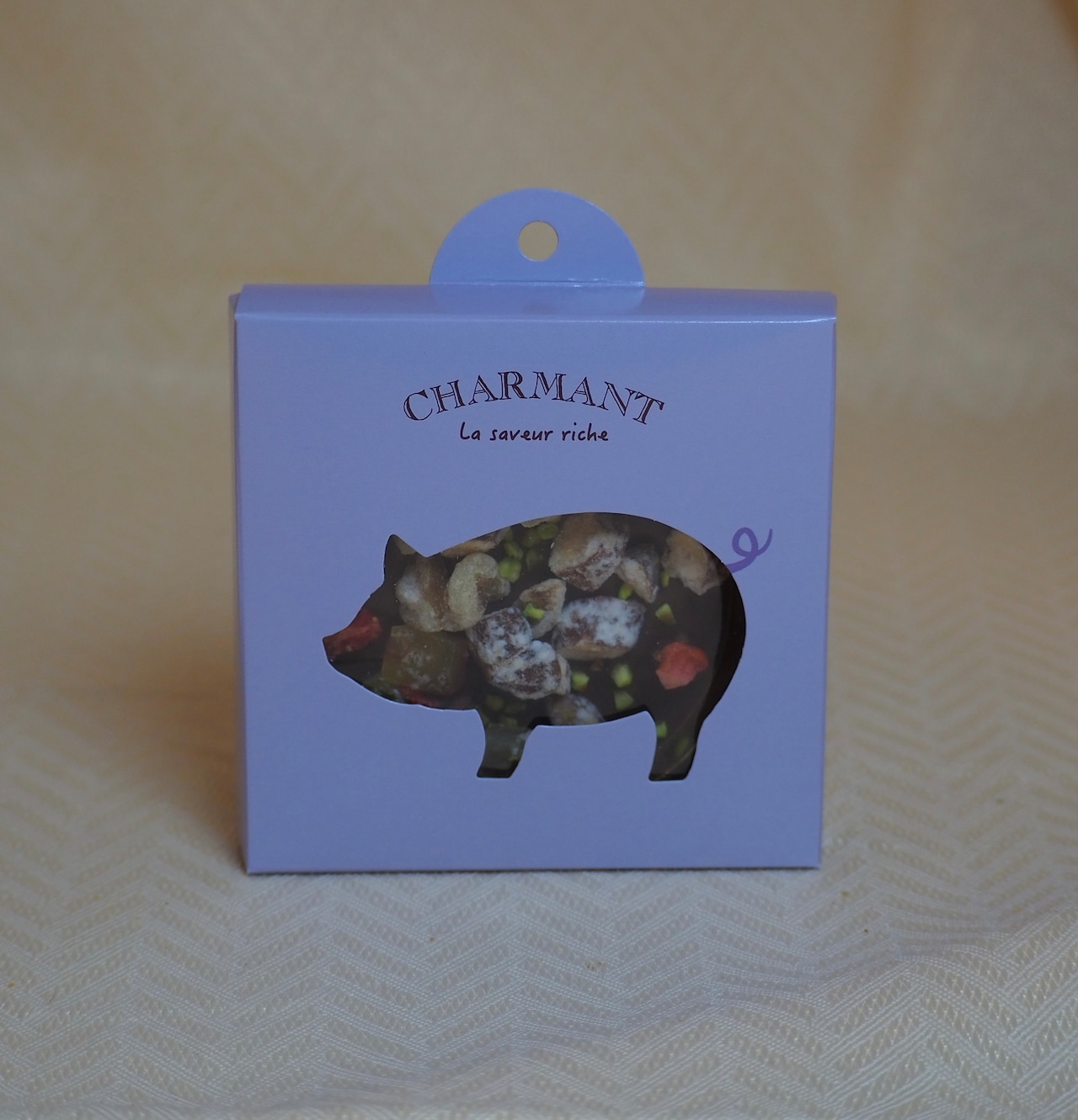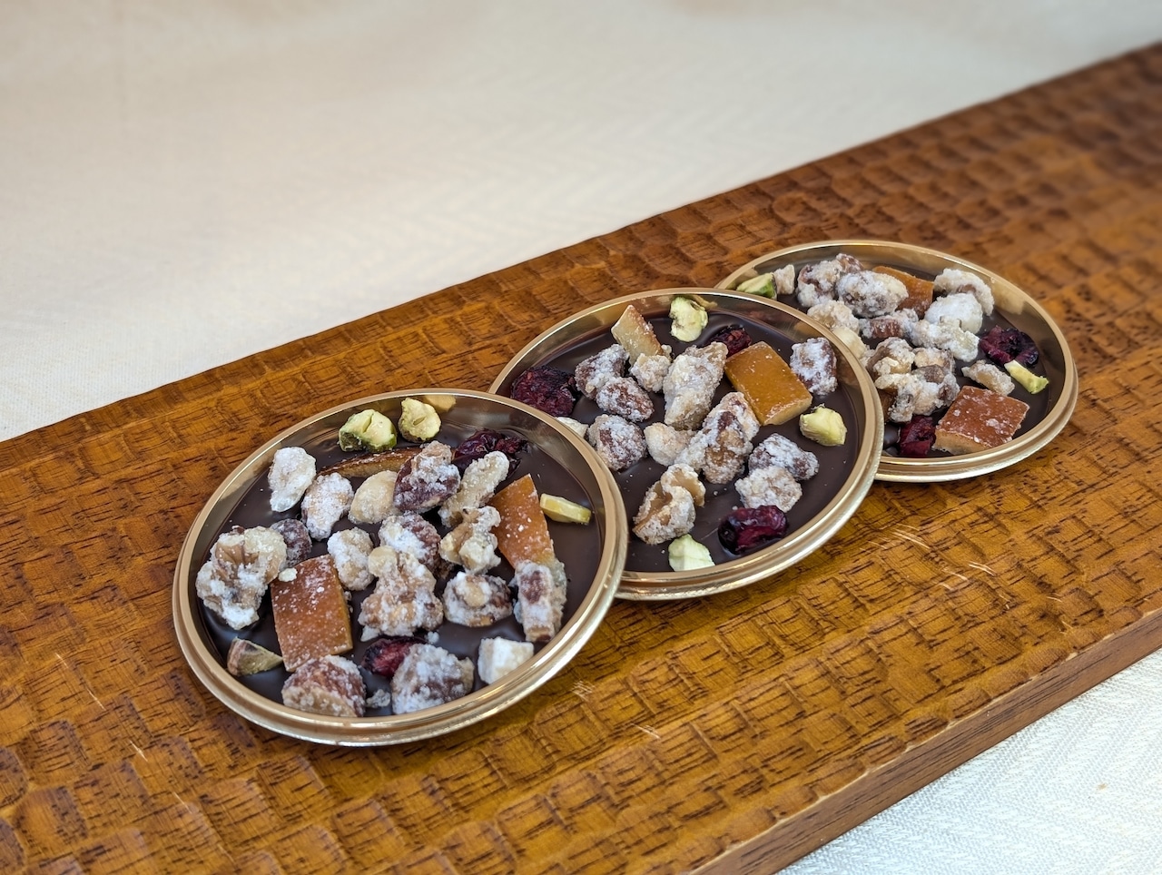 ナッツ(アーモンド、くるみ、ヘーゼルナッツ、ピスタチオ)の香ばしさや、フルーツの酸味とチョコレートのコラボレーション。