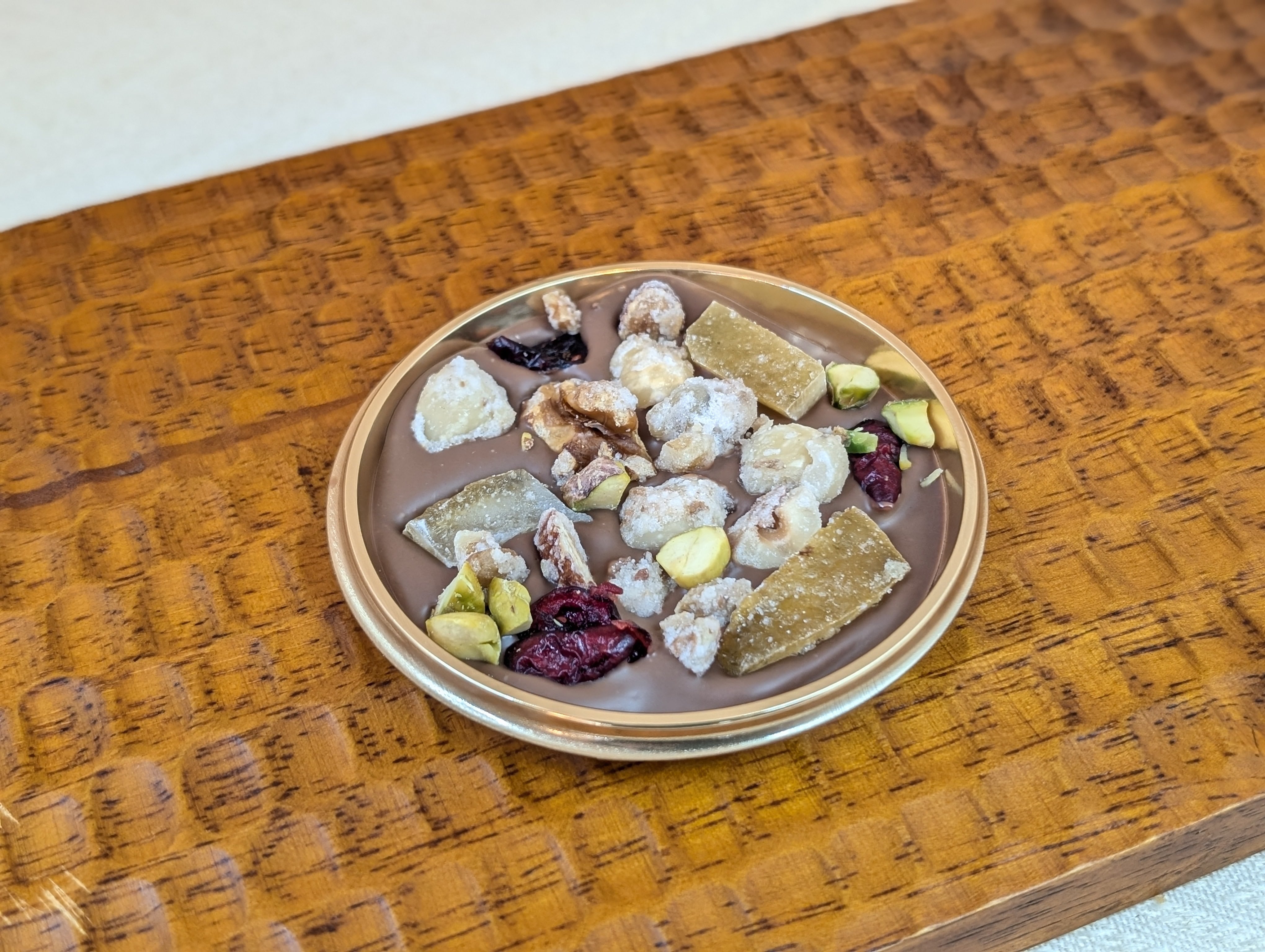 ナッツの香ばしさや、フルーツの風味、酸味とパリッとチョコレートのコラボレーション。
