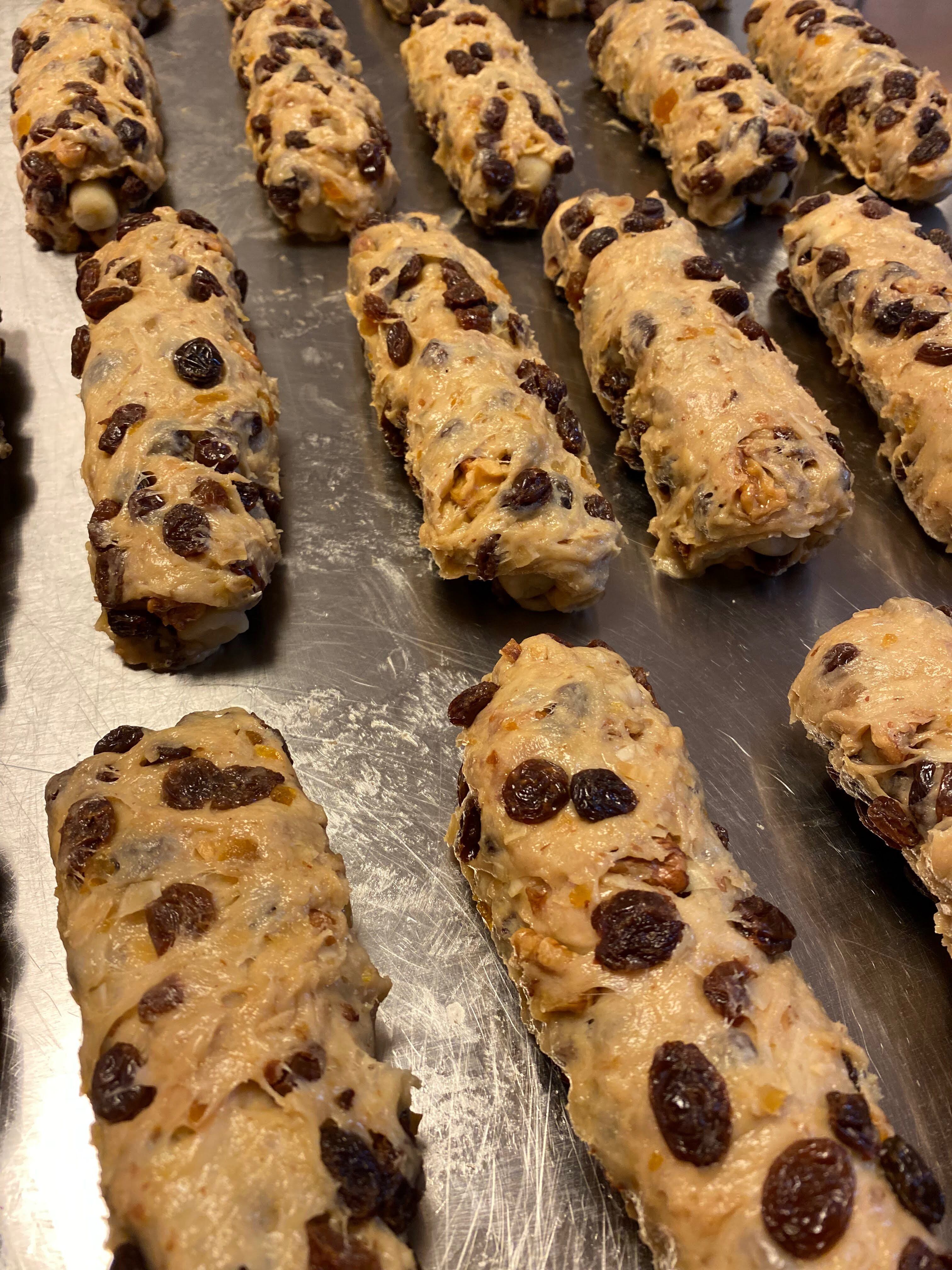 ◯北海道産小麦粉、よつ葉バター、アーモンドをたっぷり使用し、レーズンに自家製無農薬オレンジ、レモン、はっさくのピールやナッツ類をたくさん練り込み風味豊かに仕上げた本格シュトーレンです。